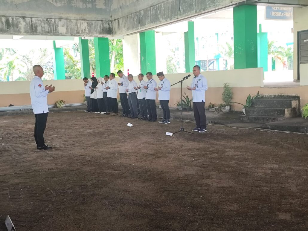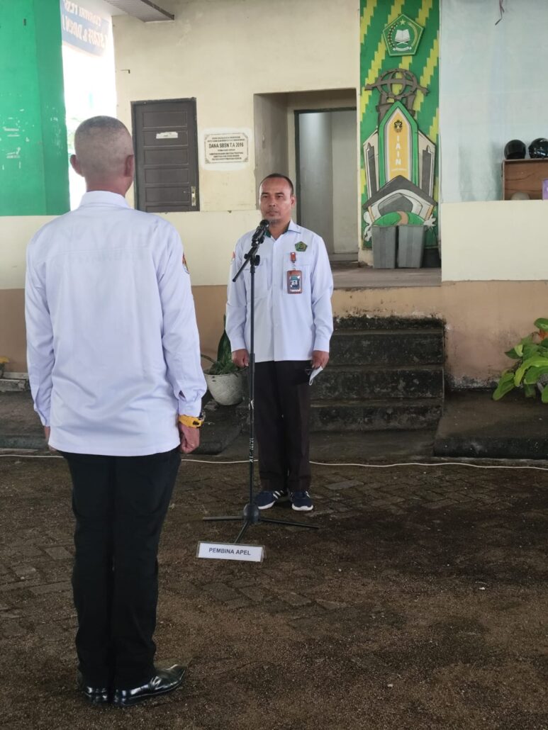 Pontianak (iainptk.ac.id) Senin, 20 April 2026 — Apel rutin pegawai yang dilaksanakan pada Senin, 20 April 2026, di lingkungan IAIN Pontianak berlangsung dengan khidmat. Kegiatan ini dipimpin oleh Kepala Bagian Umum dan Layanan Administrasi (Kabag ULA) Biro AUAK, Muhammad Syahrun, S.E., M.M., yang menyampaikan sejumlah pesan penting terkait integritas dan pengelolaan informasi di kalangan Aparatur Sipil Negara (ASN).
