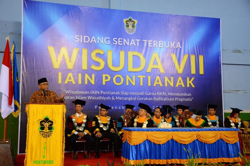 “Saya sangat mengapresiasi tema kegiatan wisuda yang diselenggarakan IAIN Pontianak, karena sangat penting dimunculkan di tengah kondisi kehidupan berbangsa saat ini,” Pernyataan itu disampaikan Direktur Pendidikan Tinggi Keagamaan Islam Kementerian Agama Republik Indonesia, Prof. H. Arskal Salim, GP, MA, Ph.D ketika memberikan kata sambutan pada Sabtu (21/7/2018) di depan ribuan orang yang memadati gedung Sport Center di acara tersebut.