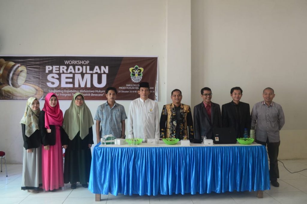 Pontianak (iainptk.ac.id)–Fakultas Syariah (FASYA) Prodi Hukum Keluarga Islam IAIN Pontianak menggelar kegiatan Workshop Peradilan Semu. Tema yang diusung, “Upgrading Kapabilitas Mahasiswa Hukum Melalui Integrasi Teori & Praktik Beracara” di Ruang VIP Aula Syeikh Abdurrani IAIN Pontianak. Kegiatan ini berlangsung pada Kamis s.d Jumat, 25-26 oktober 2019.