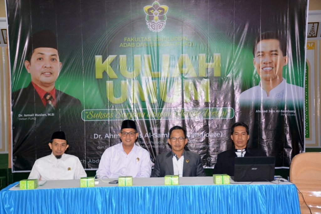 PONTIANAK (iainptk.ac.id)– Awal September ini IAIN Pontianak telah memulai perkuliahan semester ganjil 2019-2020. Fakultas Ushuluddin, Adab dan Dakwah (FUAD) IAIN Pontianak mengawali kuliah bagi mahasiswa baru dengan menggelar kegiatan Kuliah Umum, Senin (2/9) pagi di Aula Syeikh Abdul Rani Mahmud. Ratusan mahasiswa baru berkumpul dengan seragam baju putih dan celana gelap. Narasumber yang dihadirkan pada kuliah umum itu adalah kandidat doktor Ahmad Jais. Ia merupakan dosen FUAD dan juga sebagai founder & coach at mind healing technique (MHT) of Indonesia.