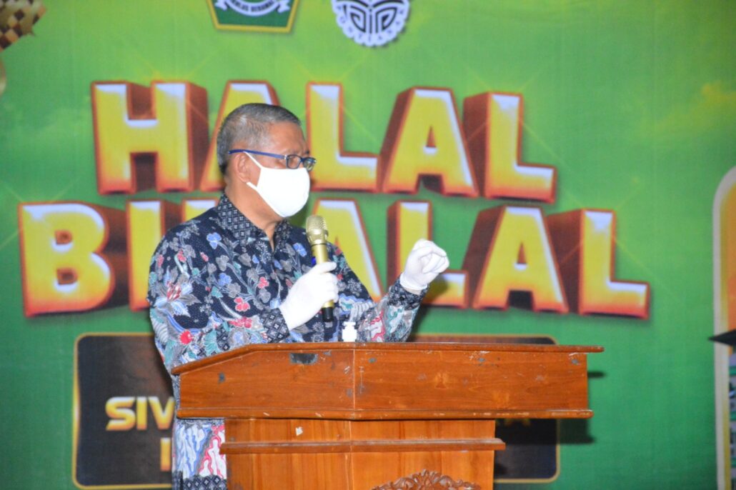Pontianak (iainptk.ac.id) Gubernur Kalimantan Barat, H. Sutarmidji, S.H., M.Hum., menyampaikan pidatonya di IAIN Pontianak dalam acara Pembinaan Pegawai dan Halal Bihalal di lingkungan IAIN Pontianak. Kegiatan yang berlangsung pada Senin, 16/05/2022 di Aula Syekh Abdul Rani Mahmud. Dihadiri Sekjen Kemenag RI, Prof. Dr. Nizar Ali, M.Ag., Anggota DPR RI, Syarif Abdullah Alkadrie, S.H., M.H., Kepala Kanwil Kemenag Kalbar, Drs. H. Syahrul Yadi, M.Si., seluruh civitas academica IAIN Pontianak serta berbagai perwakilan dari elemen masyarakat di Kalimantan Barat.
