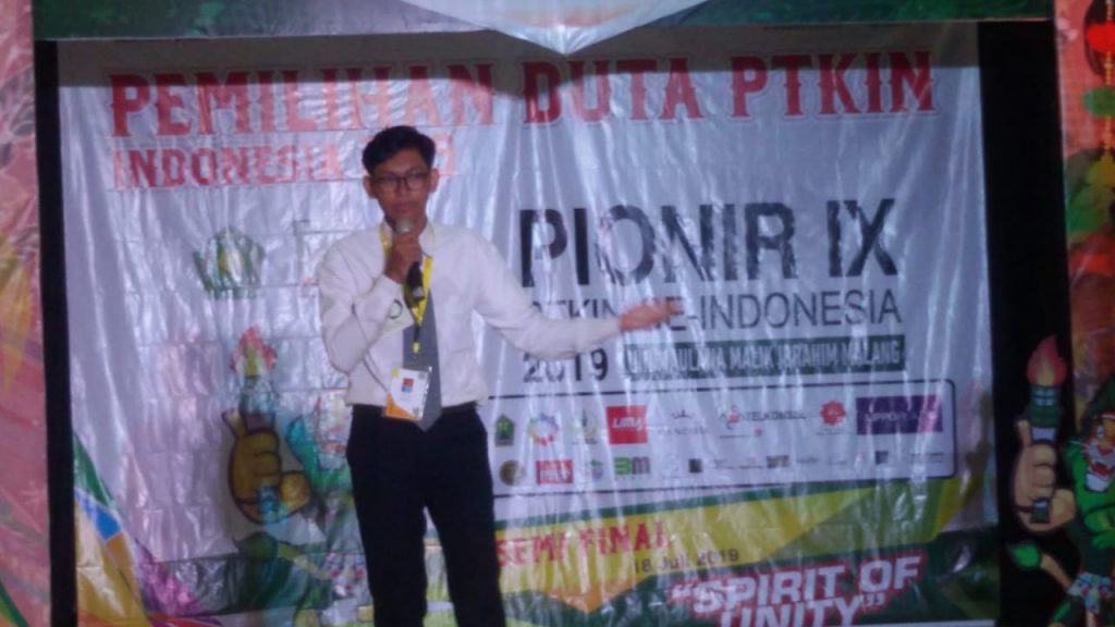 MALANG (www.iainptk.ac.id)– Huda Rabbani. Mahasiswa PGMI semester IV IAIN Pontianak tampil memukau pada Pemilihan Duta PTKIN dalam event PIONIR IX di Lippo Plaza Batu, Malang pada Kamis (18/7) sore.