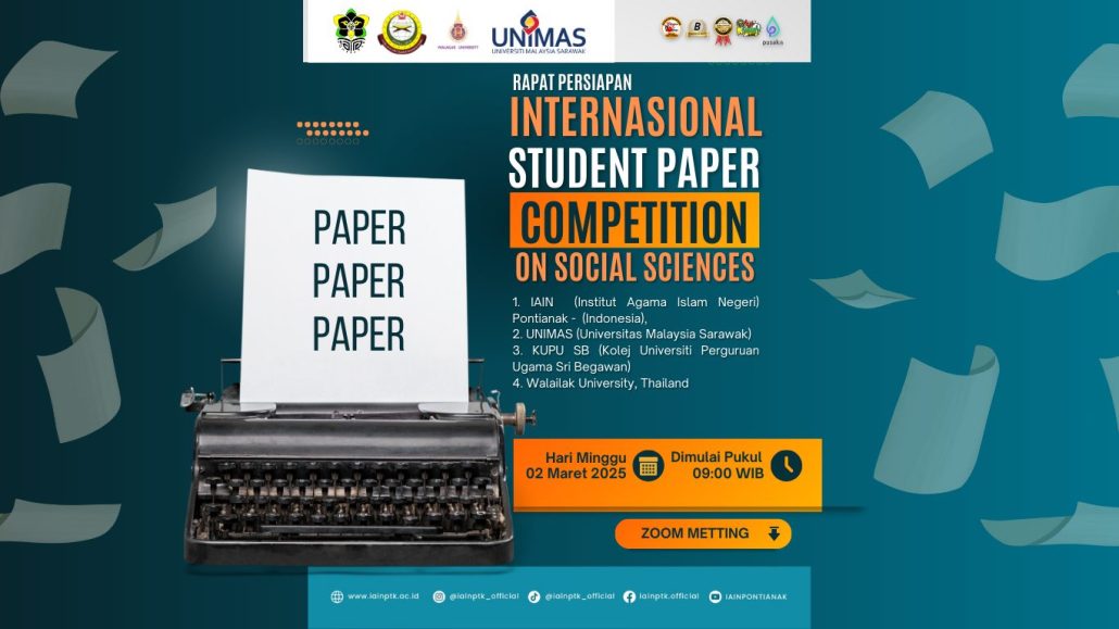 Pontianak (iainptk.ac.id) – Kolaborasi akademik lintas negara semakin diperkuat! IAIN Pontianak bersama UNIMAS Malaysia, KUPU SB Brunei Darussalam, dan WALAILAK University Thailand tengah mempersiapkan International Student Paper Competition yang akan menjadi ajang bergengsi bagi mahasiswa untuk menyumbangkan gagasan ilmiah mereka. Persiapan ini dibahas dalam pertemuan daring melalui Zoom Meeting pada Minggu, 2 Maret 2025.