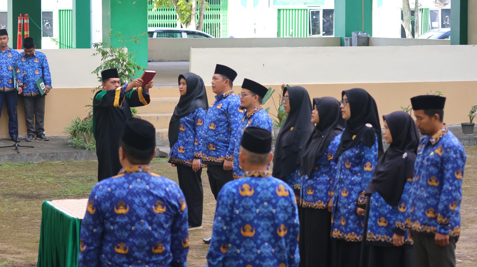 Dalam amanatnya, Dr. H. Moh. Junaidin menyampaikan apresiasi dan ucapan selamat kepada para pegawai yang telah dilantik atas kenaikan jabatan fungsional. Ia menegaskan bahwa capaian tersebut merupakan hasil dari kerja keras dan komitmen dalam menjalankan tugas sebagai aparatur sipil negara.