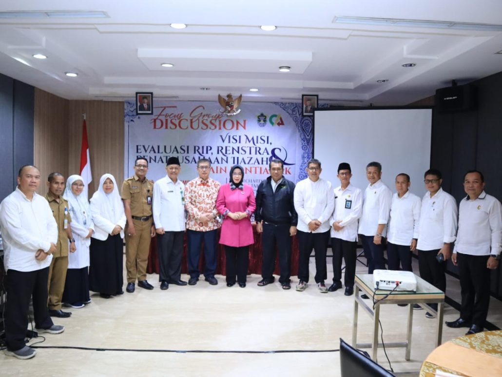 Pontianak (iainptk.ac.id) 20/11/2023 – Dalam rangka mengkaji ulang Visi Misi, Evaluasi RIP, Renstra, dan Penatausahaan Ijazah di lingkungan Institut Agama Islam Negeri (IAIN) Pontianak tahun 2023, Lembaga Penjamin Mutu (LPM) IAIN Pontianak menyelenggarakan Focus Group Discussion (FGD) di Hotel Orchardz, Jl. Gajah Mada, Kota Pontianak, pada hari Senin dan Selasa, 20–21 November 2023. Kegiatan ini dihadiri oleh para pimpinan dan anggota Civitas Academica IAIN Pontianak.