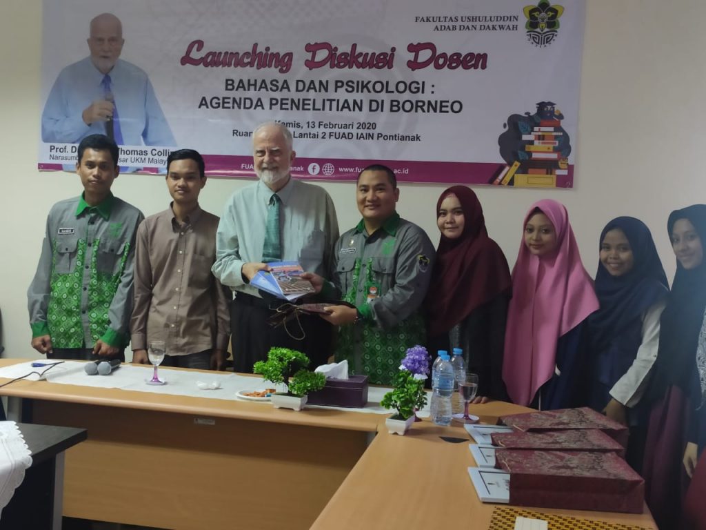 Klub Riset Mahasiswa IAIN Pontianak Berikan Cinderamata Buku Untuk Prof. James Thomas Collins