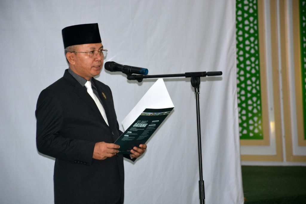“Hari ini juga Itjen datang untuk melakukan Pendampingan Laporan Keuangan. Bagi pejabat lama untuk tetap peduli dan bertanggung jawab atas pekerjaan saudara di tempat sebelumnya. Jangan diserahkan kepada pejabat baru. Karena Anda yang sudah menjalankannya dan menguasainya. Saya yakin semua kita orang baik, karena itu potensi dasar yang diberikan oleh Allah. Pembacaan 9 pilar tadi, saya harap tidak menjadi ucapan semata tapi dapat menjadi perilaku kita.” imbuhnya.