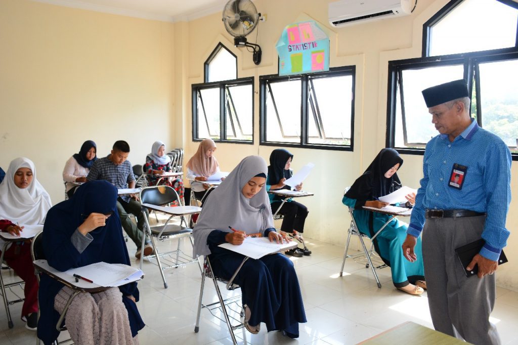Ketiga pejabat itu melakukan monitoring ke setiap kelas yang ada di gedung tersebut. Pimpinan kampus tersebut mengecek dan memeriksa tahapan pelaksanaan ujian. Mulai dari persiapan berkas, pemberian berkas ke pengawas, hingga pembagian soal ujian dan lembar jawaban kepada peserta ujian.