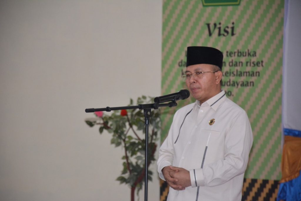 Dalam sambutannya Rektor Syarif berharap agar PNS bisa mengikuti, memahami, mengamalkan serta mengembangkan paham moderasi beragama. Islam menerima eksistensi orang lain, membentuk akademisi yang beraklak mulia, mandiri dan berkemajuan bagi bangsa dan kemanusiaan. Moderasi beragama adalah menerima eksistensi orang lain dengan lintas suku bangsa dengan kepaham beragama. Dalam hal mengajar harus mengikuti ranah kebijakan Wakil Rektor I. Fakultas dan pascasarjana tidak boleh melakukan workshop kurikulum sebelum rektorat melakukan. Karena fakultas dan pasca menerjemahkan visi misi untuk mewujudkan akademisi yang beraklak mulia, mandiri dan bermanfaat bagi nusa dan bangsa. Menerjemahkan hal itu lebih rinci di program studi ada spesialisasi menopang, menguatkan, mewujudkan program yang ada di institusi.