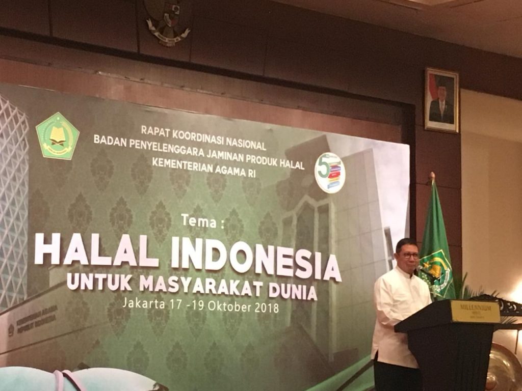 Jakarta, (iainptk.ac.id)—Rapat Koordinasi Nasional Badan Penyelenggaraan Jaminan Produk Halal (BPJPH) Kementerian Agama digelar pada 17-19/10/2018 di Melenium Hotel Jakarta. Kegiatan dihadiri Oleh Menteri Agama dan para pejabat eselon satu, Ketua Komisi Vlll DPR RI, para Kakanwil, dan para Rektor PTKIN.