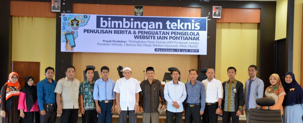 Institut Agama Islam Negeri (IAIN) Pontianak menggelar kegiatan Bimbingan Teknis Penulisan Berita dan Penguatan Pengelola Website IAIN Pontianak di Aula Lantai IV Gedung Rektorat IAIN Pontianak, Rabu, 12 Juli 2017. Kegiatan ini oleh Rektor, Kepala Biro AUAK IAIN dan para humas di masing-masing fakultas, unit, dan lembaga di lingkungan IAIN Pontianak.