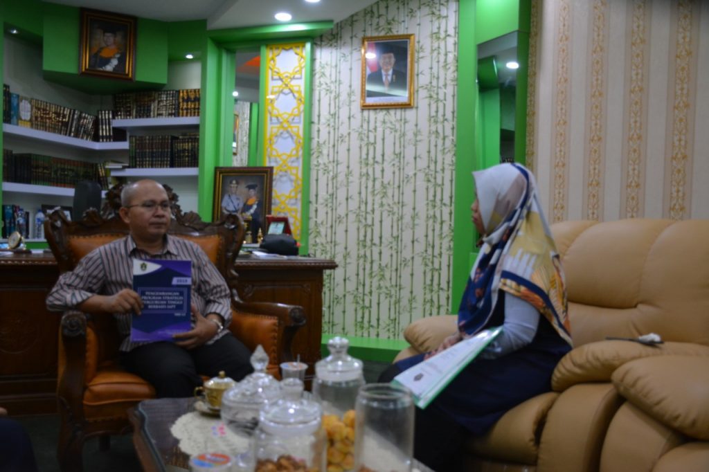 PONTIANAK (iainptk.ac.id)—Peserta Diklatpim IV Angkatan XXXIII melaksanakan audiensi dengan Rektor IAIN Pontianak pada Rabu (24/4/2019). Kasubbag Lembaga Penjaminan Mutu (LPM) IAIN Pontianak, Dessy Nurul Fajariah, SE., memaparkan kepada Rektor IAIN Pontianak  tentang proyek perubahan yang digagasnya. “Sebagai peserta Diklatpim IV, saya akan melakukan proyek perubahan yang berkenaan dengan tugas pokok saya selaku Kasubbag pada LPM IAIN Pontianak. Proyek Perubahan yang akan disiapkan adalah ‘Peningkatan layanan lembaga penjaminan mutu IAIN Pontianak berbasis online’. Tujuan proyek perubahan ini adalah terwujudnya layanan LPM berbasis online yang terpadu dan terintegrasi, up to date dengan konten variatif yang mendukung dan memberikan kemudahan kepada semua stakeholder terutama dalam proses akreditasi” terangnya.