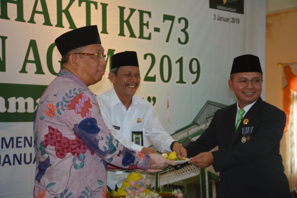 PONTIANAK (iainptk.ac.id)–Rektor IAIN Pontianak, Dr. Syarif, MA mendapatkan penganugerahan tanda kehormatan Satyalancana Karya Satya 20 tahun, dari Presiden Joko Widodo, tepat di Hari Amal Bakti (HAB) Kementerian Agama ke 73, Kamis (03/01/2019) di Halaman Kantor Wilayah Kementerian Agama Provinsi Kalimantan Barat. Penganugerahan tersebut diserahkan langsung oleh Gubernur Kalimantan Barat, H. Sutarmidji, SH., M.Hum.