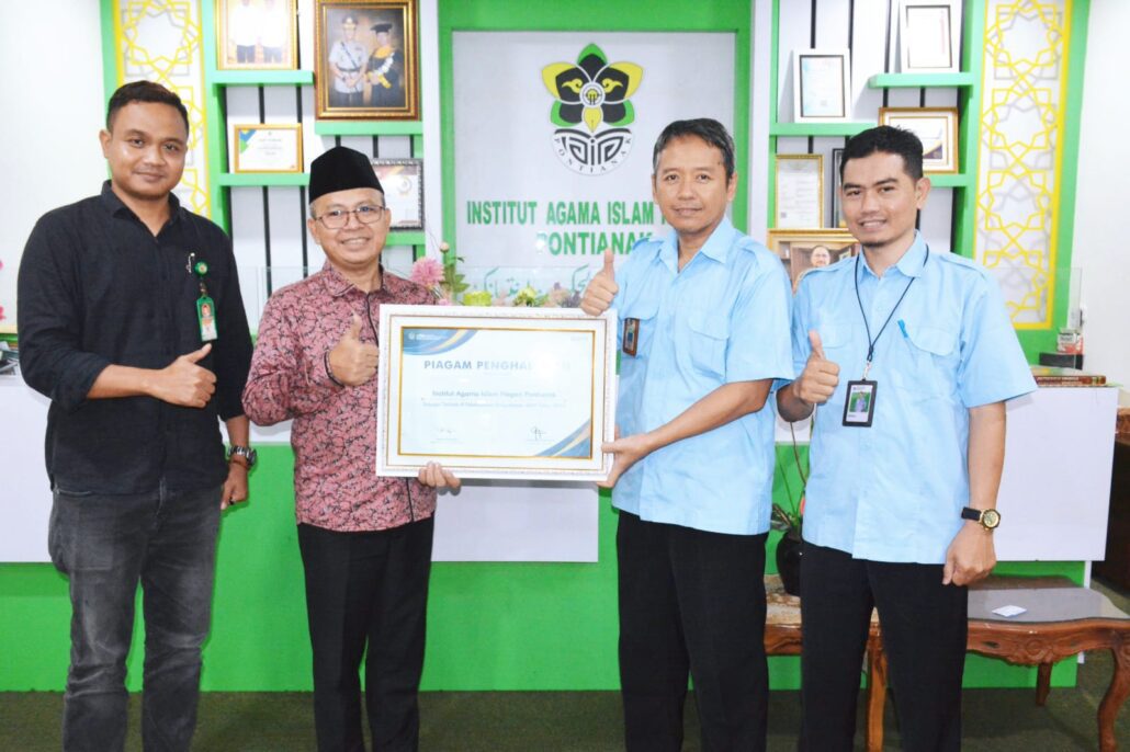 Pontianak – (iainptk.ac.id) Rektor IAIN Pontianak menerima secara langsung Penghargaan Pelaksanaan Pemanfaatan BMN Terbaik Tahun 2022 dari Kantor Wilayah Direktorat Jenderal Kekayaan Negara (DJKN) Kalimantan Barat. Serah terima penghargaan ini berlangsung di Ruang Kerja Rektor, Rabu (05/04/2023).