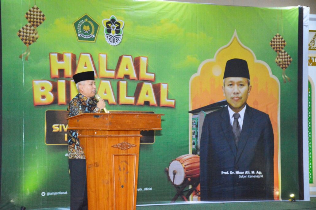 Pontianak (iainptk.ac.id) Sekjen Kemenag RI, Prof. Dr. Nizar Ali, M.Ag., menjadi pembicara utama di IAIN Pontianak dalam acara Pembinaan Pegawai dan Halal Bihalal di lingkungan IAIN Pontianak. Kegiatan yang berlangsung pada Senin, 16/05/2022 di Aula Syekh Abdul Rani Mahmud. Dihadiri Gubernur Kalimantan Barat, H. Sutarmidji, S.H., M.Hum., Anggota DPR RI, Syarif Abdullah Alkadrie, S.H., M.H., Kepala Kanwil Kemenag Kalbar, Drs. H. Syahrul Yadi, M.Si., seluruh civitas academica IAIN Pontianak serta berbagai perwakilan dari elemen masyarakat di Kalimantan Barat.