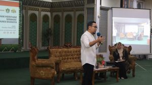 Dua narasumber utama kemudian memberikan pemaparan. Andry Fitriyanto, M.Ud, menyampaikan materi berjudul “Bincang Pontianak Heritage sebagai Laku Reproduksi Budaya”. Menurutnya, sejarah tidak boleh hanya dipandang sebagai sesuatu yang statis. “Warisan budaya itu hidup, ia terus diproduksi ulang dalam praktik sosial masyarakat sehari-hari. Karena itu, kita harus aktif terlibat dalam merawatnya,” jelasnya.